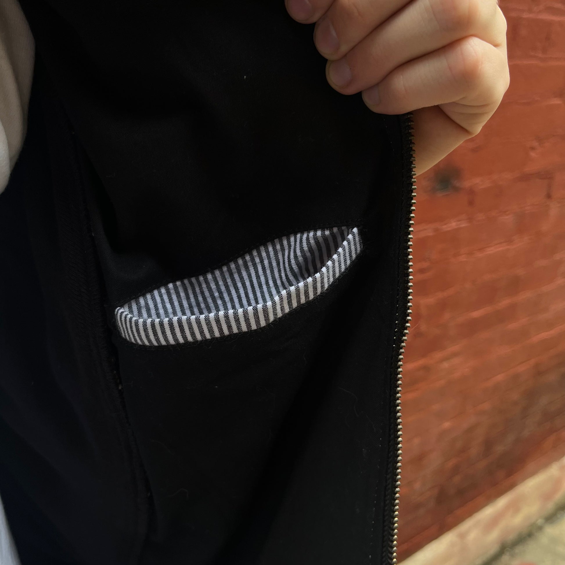 - Syncable "sleeves" using braided cotton drawstrings and metal cord locks for a custom fit