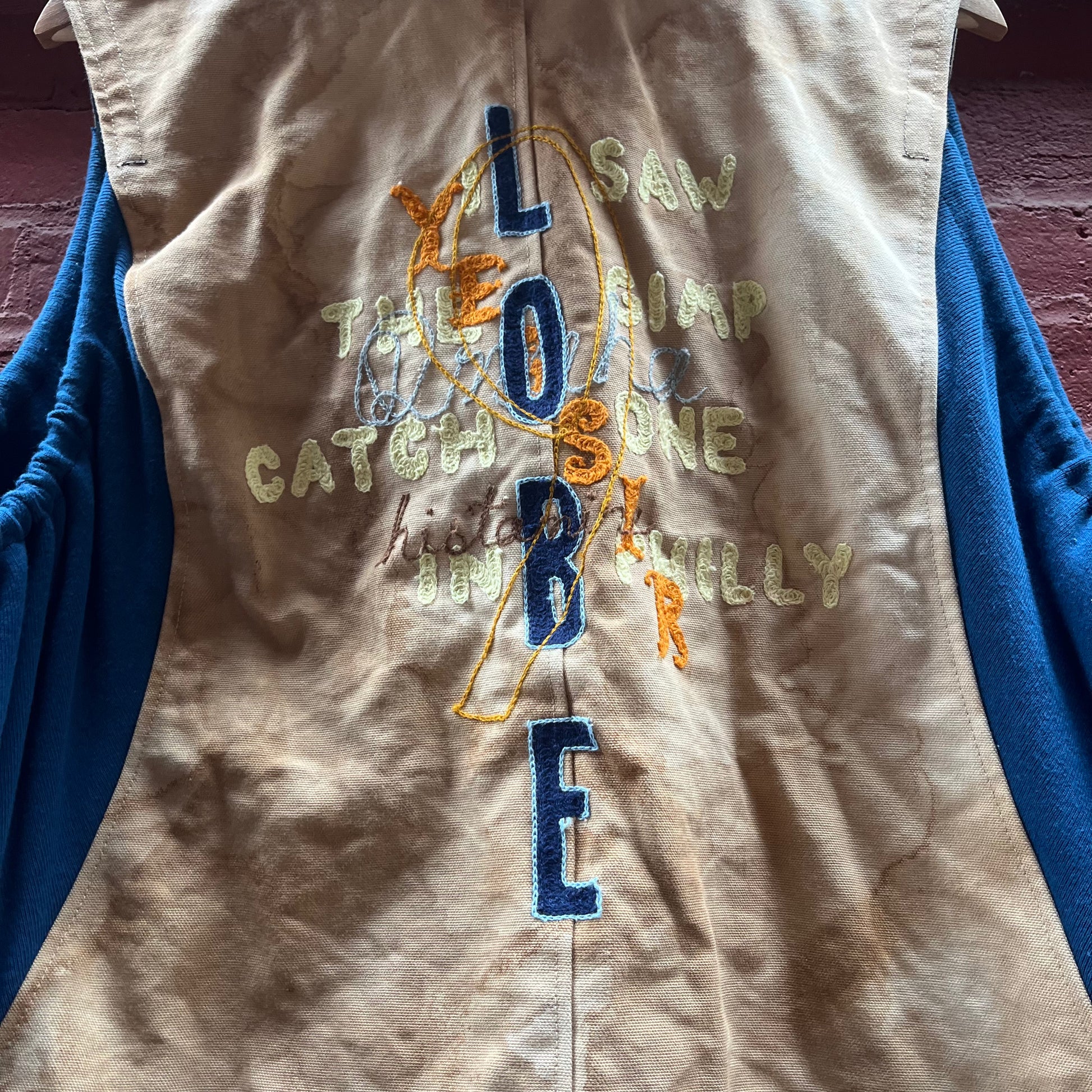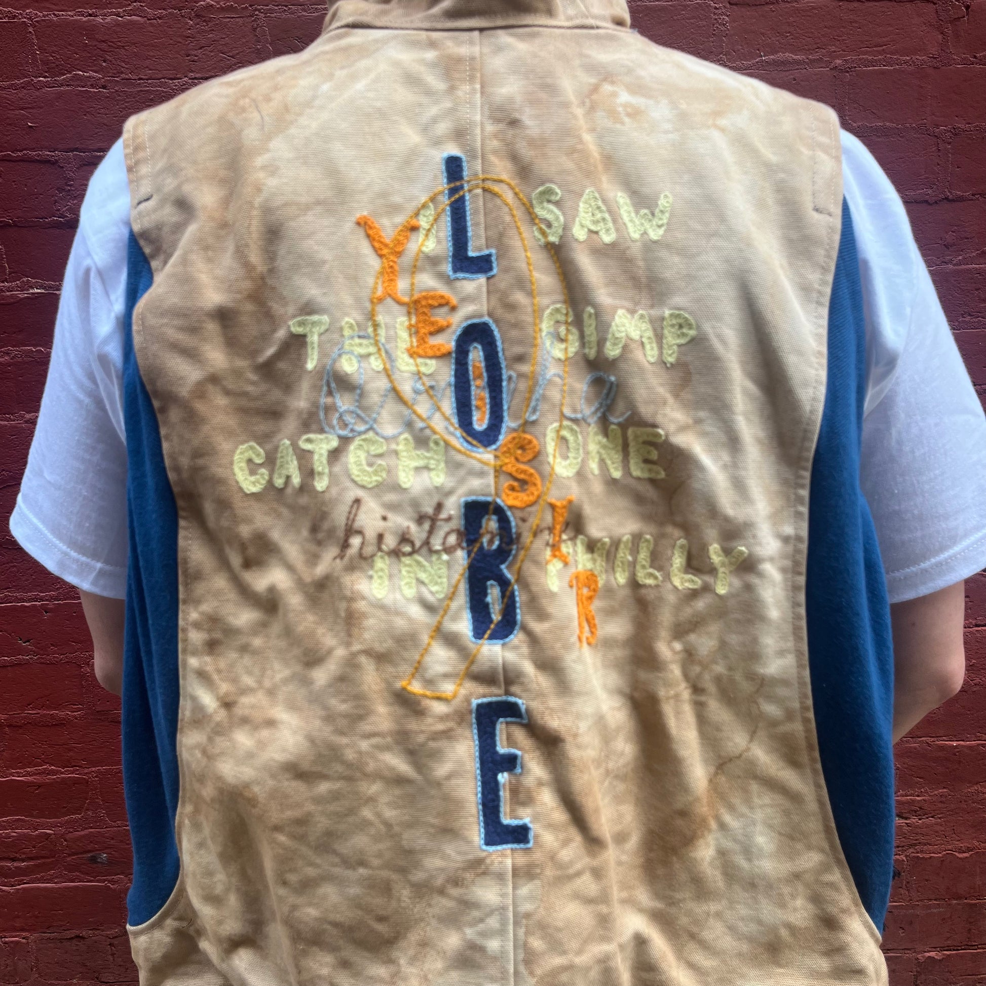 Synch Vest - Persimmon Canvas With Chainstitch Text Smear #2